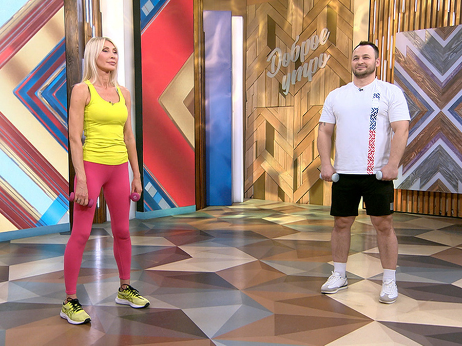 Сделаем мышцы крепкими и поработаем над подтянутыми руками. Плавные движения без рывков покажет рубрика "Быстрая зарядка".