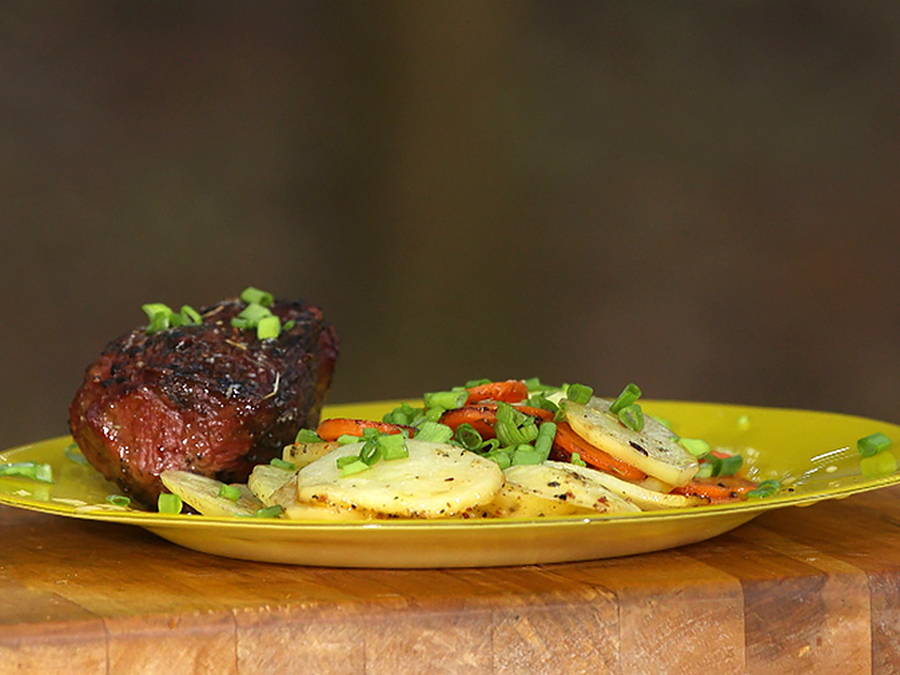 Морковь и картофель отлично сочетаются с мясом от нашего шеф-повара. Рецепт ресторанного блюда, которое легко приготовить самому, вы найдёте в рубрике "Фуд-корт".
