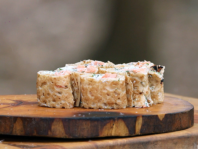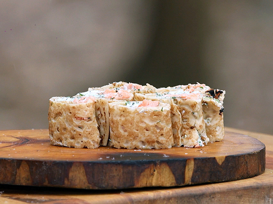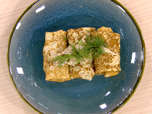 Нежные блинчики с красной рыбой, творожным сыром и зеленью от нашего шеф-повара украсят любой стол. Вам понравится это блюдо по рецепту рубрики "Фуд-корт".