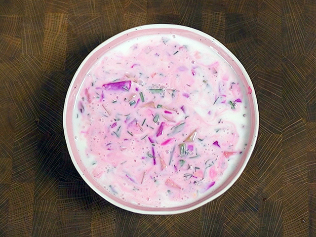 Ответим окрошке на кефире и приготовим другой популярный холодный суп на основе свежих огурцов, варёной свёклы, яиц и зелени с добавлением сметаны и кефира.