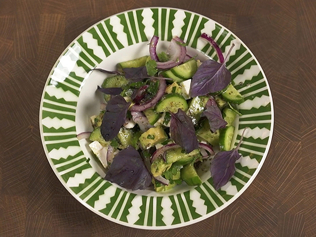 Свежесть и энергия в каждой вилке. Попробуйте салат из красного лука, огурцов и сыра с добавлением соуса на основе лимона, итальянских трав и оливкового масла.