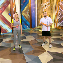 Комплексно нагрузим мышцы рук, предотвращая их дряблость и увеличивая силу. Рубрика "Быстрая зарядка" протестирует тренировку от фитнес-гуру Джейн Фонды.