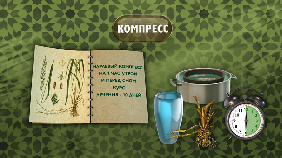 Стакан сухих корневищ положить в кастрюлю с водой и на водяной бане довести до кипения. Затем убрать с огня и настоять в течение получаса. Полученную массу приложить к проблемным суставам тонким слоем 1-2 сантиметра, перевязать марлей и оставить на один час. Повторять процедуру дважды в сутки – утром и перед сном в течение 10 дней.