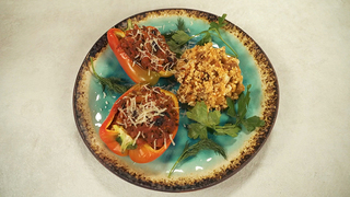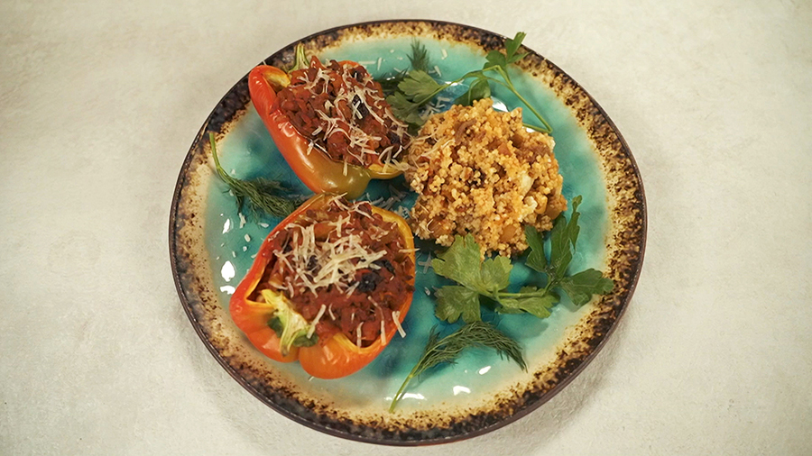 Яркое, полезное, аппетитное блюдо – перец, фаршированный овощами и мясом, с гарниром из кускуса – особенно оценят те, кто следит за своим питанием.