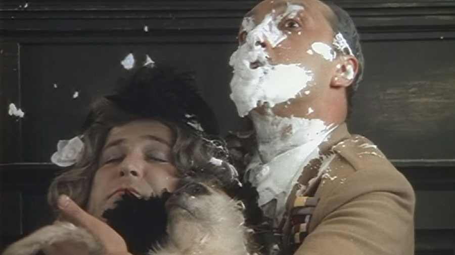 Сцена битвы тортами далась нелегко. Специалист по костюмам буквально плакала – ведь у артистов был всего один дубль, а из-за экономии средств у костюмов не было копий, отстирывать одежду было бы проблематично. Причём сладость была совсем без сахара – чтобы торты не плавились под софитами, их сделали из зубной пасты.