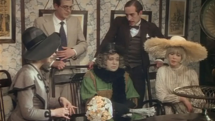 Александр Калягин вспоминал: перерывы были слишком короткими, чтобы полностью переодеться в мужскую одежду. Ведь на нём были даже чулки, для полноты образа. Единственное, что он успевал, чтобы не пропускать обед – снять парик. Артист посмеивался, глядя в зеркало – видеть лысую женщину было весьма непривычно.