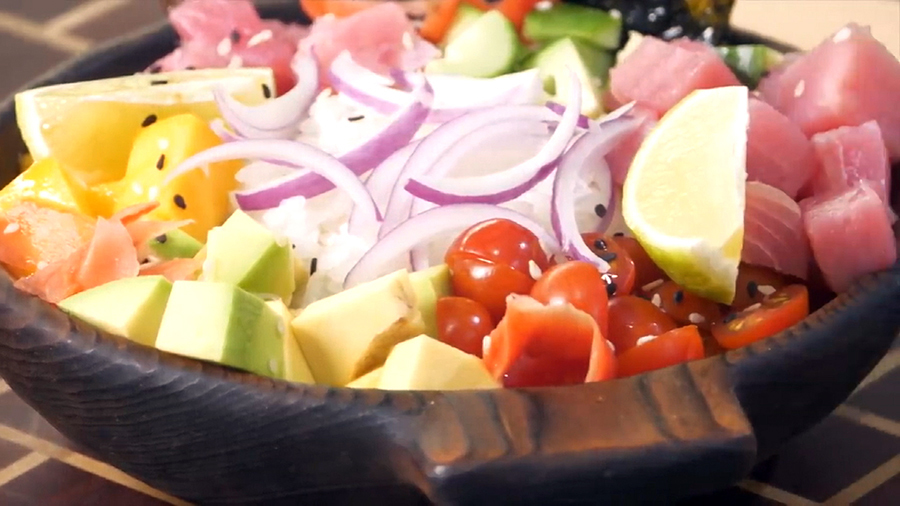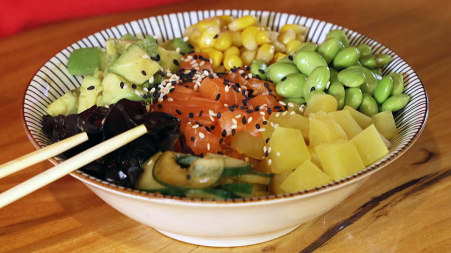 – Поке не салат, а полноценное блюдо. Главным его ингредиентом является свежая рыба, которую режут крупными кубиками и выкладывают на подушку риса. Потом туда добавляют дары природы.