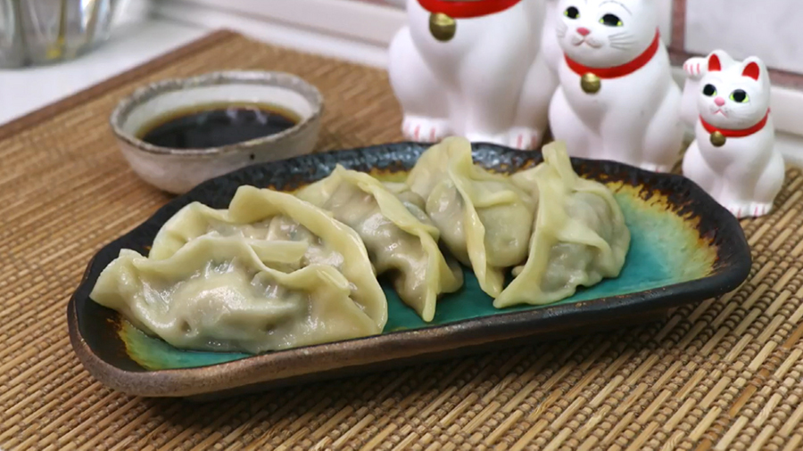 – Гёдза – это разновидность пельменей, которые исторически делаются из свинины с грибами. Но на самом деле какую только начинку туда не кладут! Тесто нужно тонкое рисовое. Пельмени в форме полумесяца ещё обычно поджаривают и припускают в соусе.