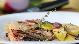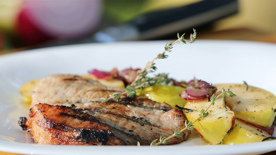 Мясо от нашего шеф-повара – это изысканный вкус блюда и его аппетитный вид. Рецепт свиных отбивных с печёными яблоками вы найдёте в рубрике "Фуд-корт".