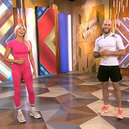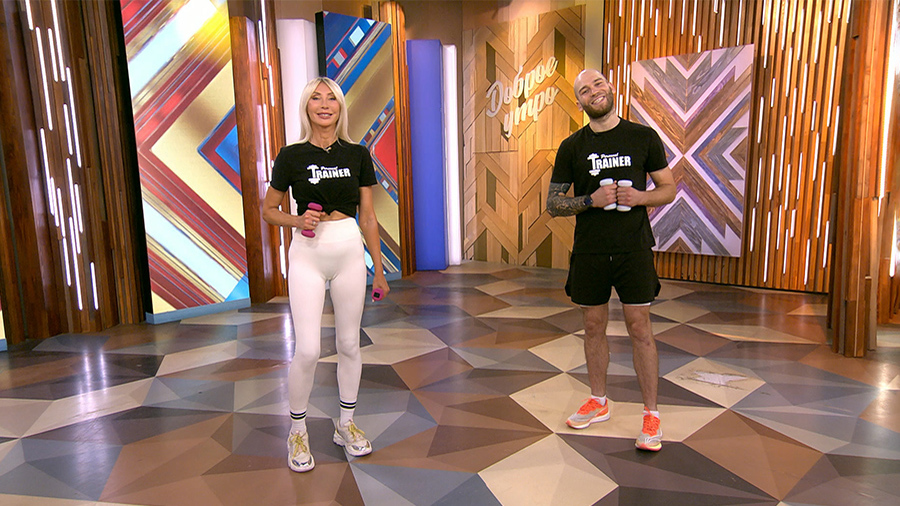 Задействуем плечи и мышцы груди, укрепим поясницу в статике, повысим тонус верхней части спины. Над зоной трицепсов поработаем с рубрикой "Быстрая зарядка".