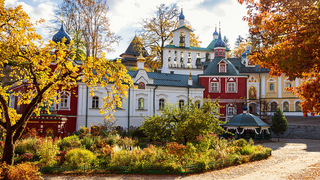 На территории монастыря здания разных стилей и эпох, но при этом никакого диссонанса. Очень гармоничная атмосфера, здесь приятно находится. Неудивительно, что именно Псково-Печорский монастырь Андрей Тарковский и выбрал для своего фильма "Андрей Рублёв". Сцена, как на фоне стен монастыря взлетают гуси, стала знаковой в этой картине.