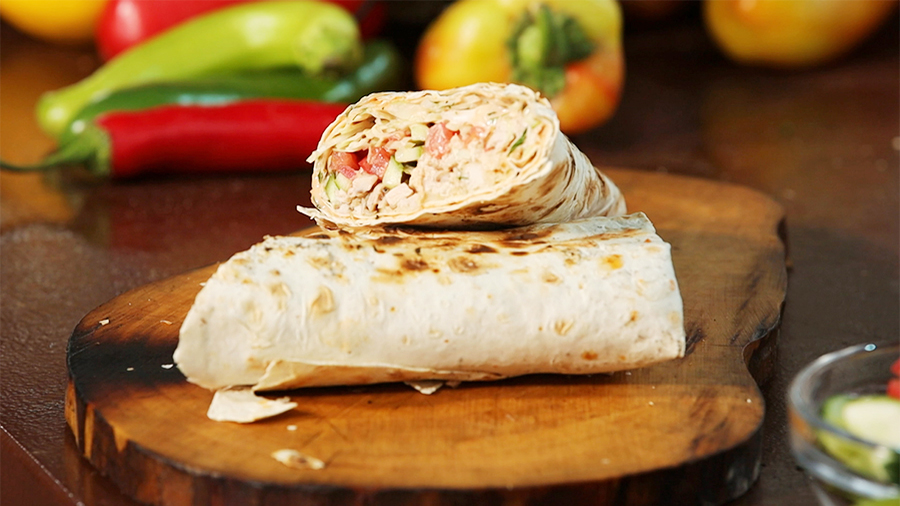 Курица на гриле, свежие овощи и соус от нашего шеф-повара сделают шаурму не только вкусной, но и полезной. Рецепт блюда вы найдёте в рубрике "Фуд-корт".