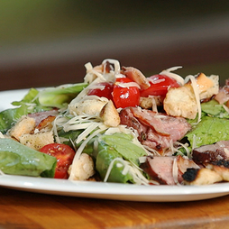 Тёплый салат с мясом и печёным перцем