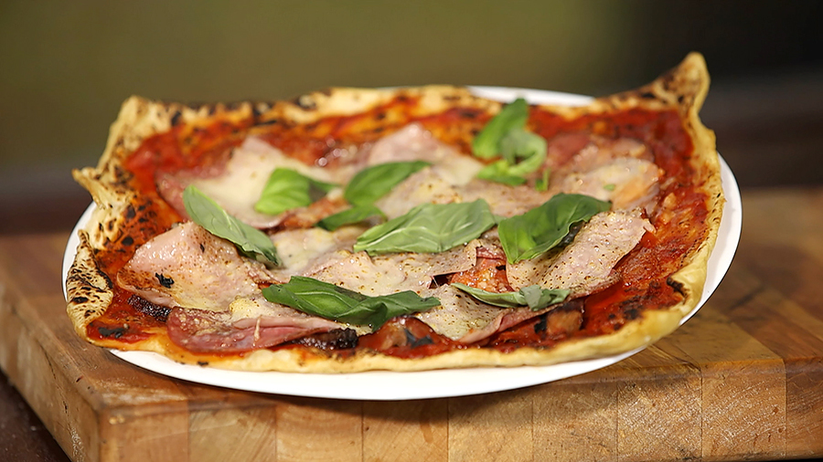 У пиццы с мясными деликатесами от нашего шеф-повара идеально пропечённая начинка и хрустящая корочка. Рецепт блюда вы найдёте в рубрике "Фуд-корт".