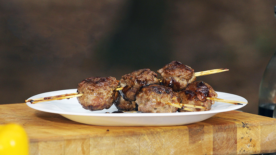 Обжаренные на огне и томлённые в соусе шарики из свинины приготовит наш шеф-повар. Рецепт блюда вы найдёте в рубрике "Фуд-корт".