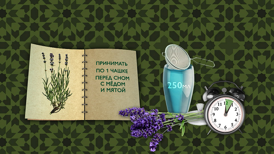 Для спокойного сна, а также благотворного влияния на сосуды рекомендуется делать чай с лавандой. Ложку сухих цветков залить стаканом кипятка, настоять 10 минут, затем процедить. Пить по одной чашке вечером перед сном или в другое время, чтобы снять нервное напряжение. Можно добавить мёд и мяту.