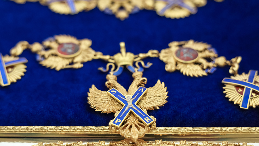 В 1698 году Пётр I учредил орден Святого апостола Андрея Первозванного. Вплоть до Октябрьской революции он считался высшей государственной наградой России и жаловался по царскому усмотрению. После упразднения он был восстановлен в 1998-м. Почётным орденом награждаются государственные и общественные деятели, представители науки, культуры, искусства и экономики за исключительные заслуги, способствующие процветанию страны.