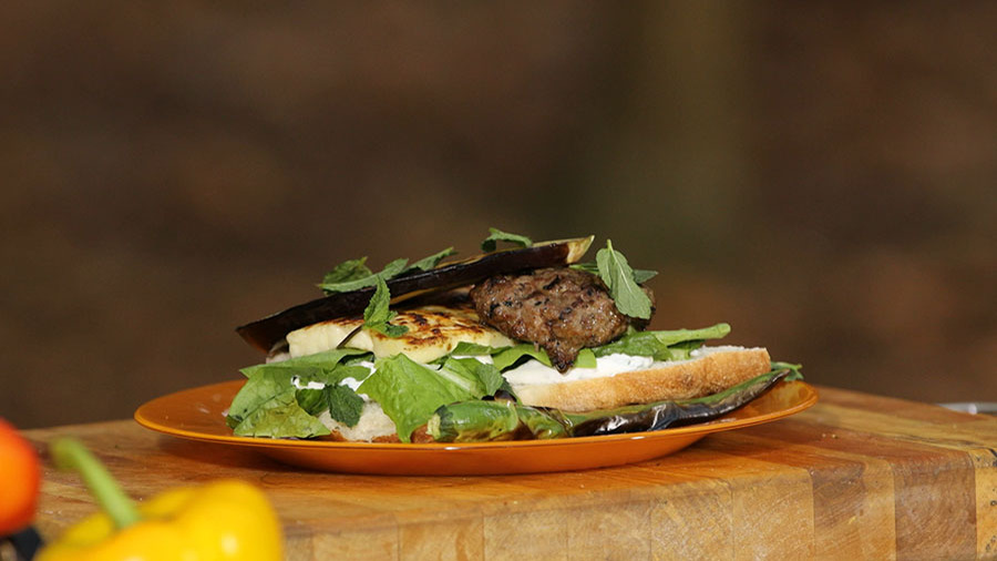 Бутерброд с котлетой и баклажаном