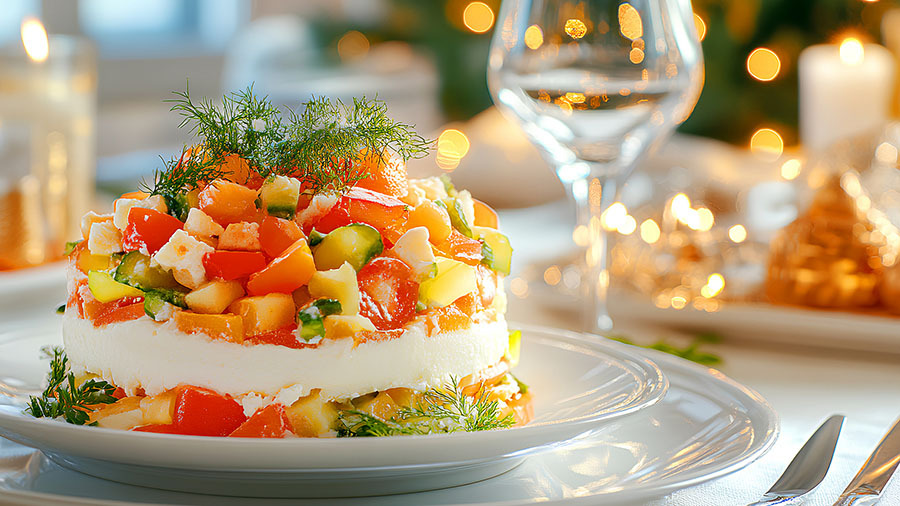 Сейчас самый богатый стол у любой хозяйки на Новый год. Неизменными остаются многие блюда, но не их подача. Тренд последних лет – нестандартная сервировка привычных яств. Любимая селёдка под шубой – в виде рулета или даже ролла. Но ведь главное не как, а что! Родных и близких снова будут ждать винегрет и заливная рыба, оливье и холодец. В лучших традициях!