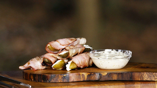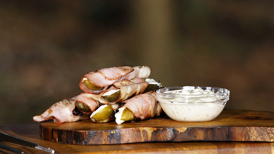 Пикантную закуску приготовит наш шеф-повар. Вам понравятся копчёные огурчики в беконе с начинкой из крем-чиза по рецепту рубрики "Фуд-корт".