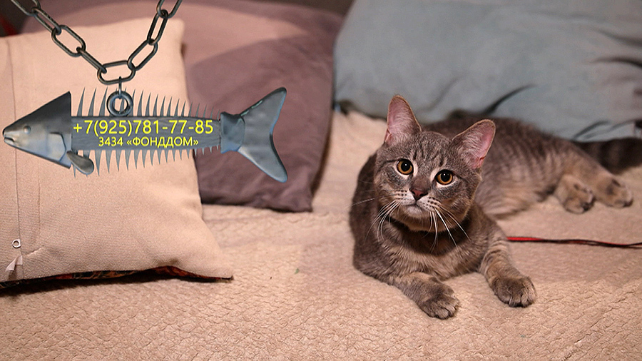 – Перед вами маленький котик. Это Серж, он же Серёжа, он же котик – серенький бочок. Котик очень любопытный, молодой. Он живёт сейчас в доме на передержке. Дружит с кошками и собаками, поэтому может жить в любом месте.