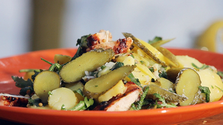 Ароматное и сытное блюдо приготовит наш шеф-повар. Рецепт салата из курицы в йогуртовом маринаде с картофелем и руколой вы найдёте в рубрике "Фуд-корт".