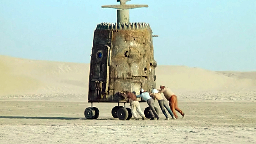 Когда нужно было вылетать на съёмки, декорация уехала не в Небит-Даг, а во Владивосток – по ошибке. Пока её разыскивали, прошло несколько недель, а актёры ждали на месте и снимали с режиссёром то, что могли без неё. Когда аппарат доставили, художник сказал, что нужно его немного подкоптить для достоверности. Но материал оказался легко воспламеняемым, и начался пожар. Его удалось потушить песком, но одна часть подгорела, и режиссёр принял решение снимать, как есть. К счастью, за ночь художник раздобыл необходимые детали и починил декорацию.