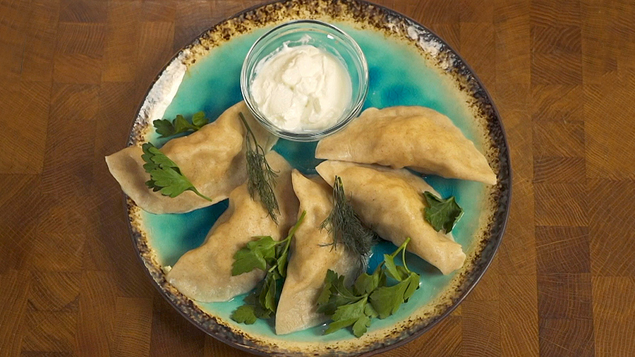 Добавьте остроты в привычное блюдо и приготовьте вареники из куриного фарша с перцем, репчатым луком и имбирём. Украсить блюдо можно свежей зеленью.