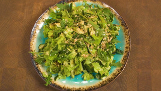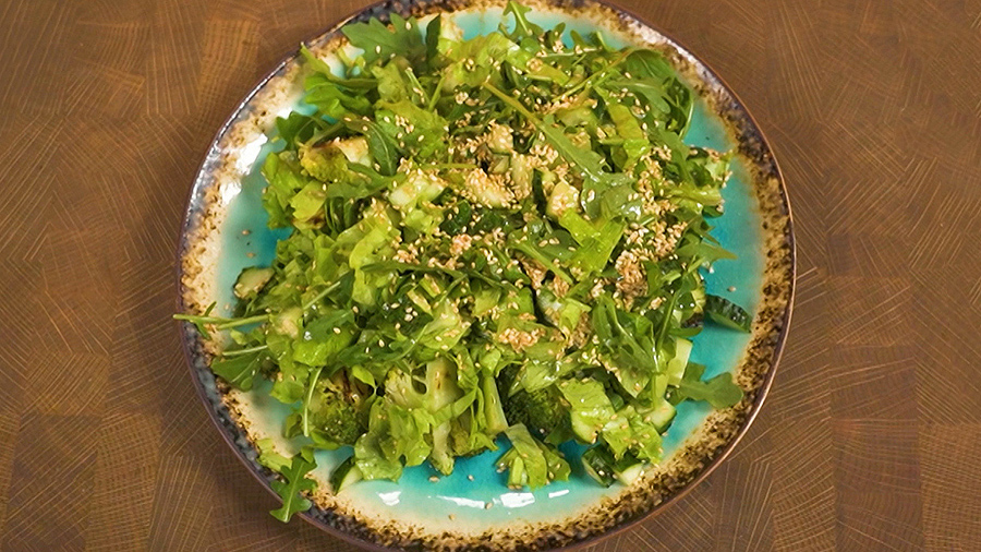 Огурцы, рукола и брокколи станут основой полезного салата. А пикантности ему придаст заправка из сока лайма и оливкового масла с добавлением кунжута.