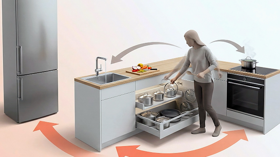 Что такое "рабочий треугольник" на кухне? Где надо хранить посуду? И куда поставить посудомоечную машину и кофеварку? Узнаем в "Советах с настроением".