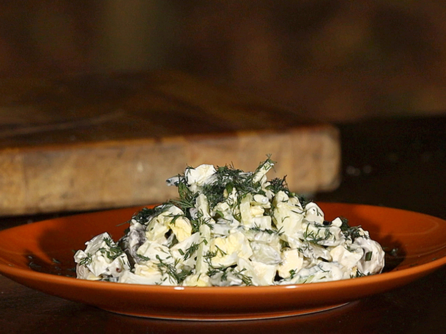 Всего три ингредиента и отличная закуска на завтрак готова. Вам понравится лёгкий гриль-салат из шампиньонов, яиц и огурцов по рецепту "Фуд-корта".