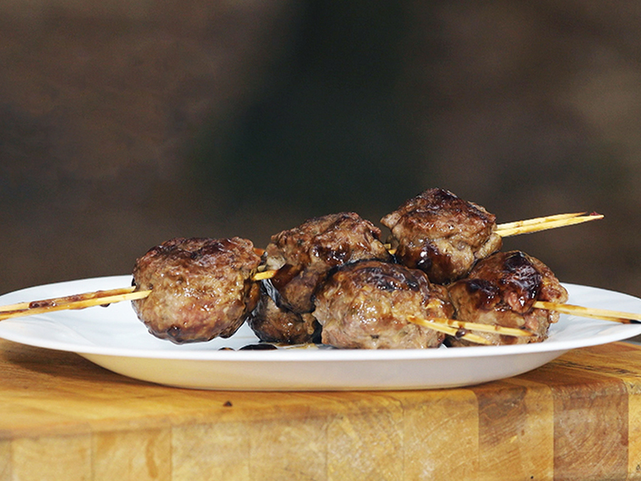 Обжаренные на огне и томлённые в соусе шарики из свинины приготовит наш шеф-повар. Рецепт блюда вы найдёте в рубрике "Фуд-корт".