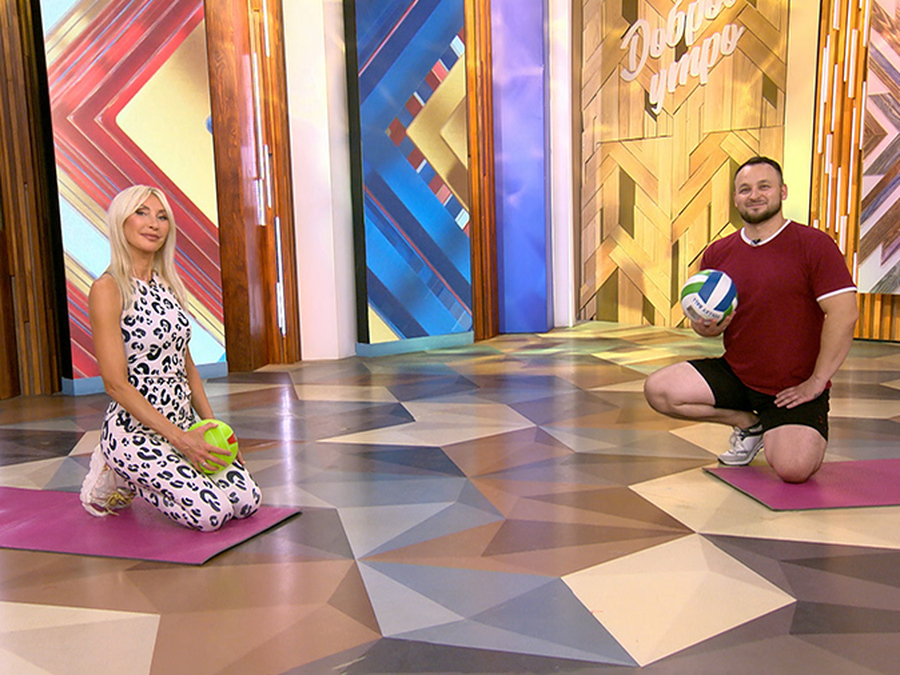 Укрепим внутреннюю часть бёдер и тонизируем руки. Тренировку с мячом для плоского живота проведёт рубрика "Быстрая зарядка".