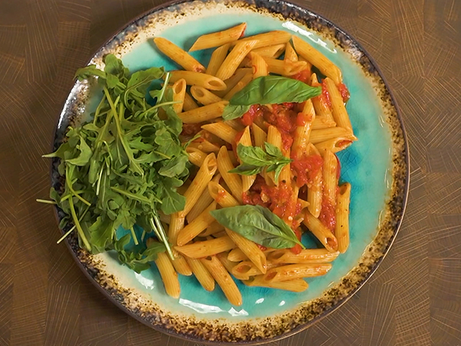 Паста из твёрдых сортов пшеницы и томатно-чесночный соус с добавлением острого перца и базилика – это не только вкусное, но и очень полезное блюдо.