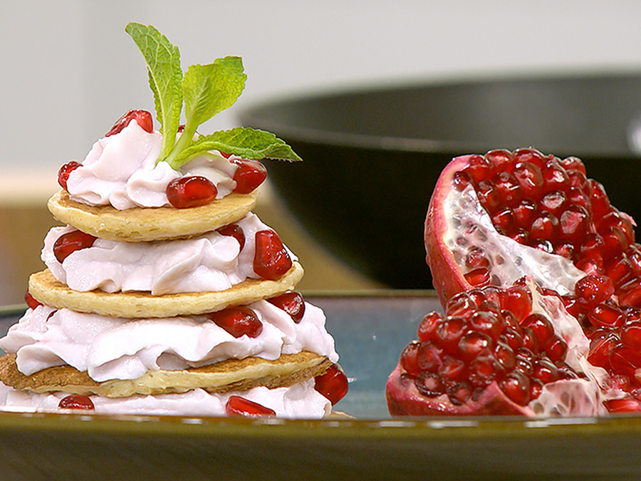 Для иммунитета и настроения. Быстрый и красивый десерт из блинчиков с гранатом приготовим с обладателем звания "Лучший кондитер Москвы" Олегом Ильиным.