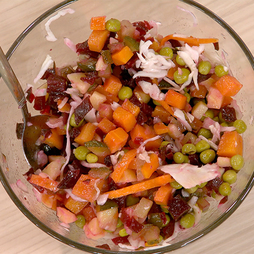 Нарезать, перемешать и завернуть! Картофель, морковь, свёкла, солёные огурцы и белая фасоль с зеленью станут основой вкусного и полезного салата.