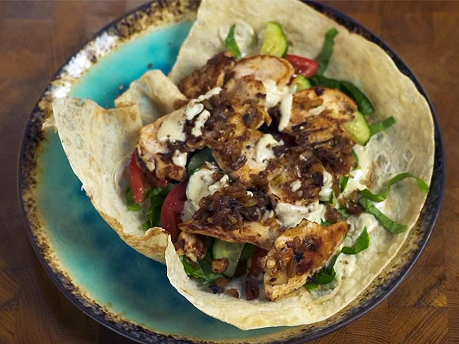 Попробуйте сделать самый популярный фастфуд не только вкусным, но и полезным. Приготовьте шаурму с куриной грудкой в лаваше и с горчично-сметанным соусом.