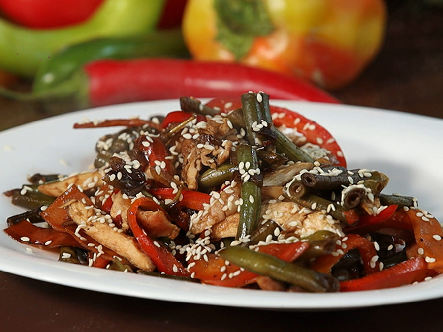 Простое, но очень вкусное блюдо приготовит наш шеф-повар. Попробуйте салат с болгарским перцем, баклажанами, кабачками и курицей по рецепту "Фуд-корта".
