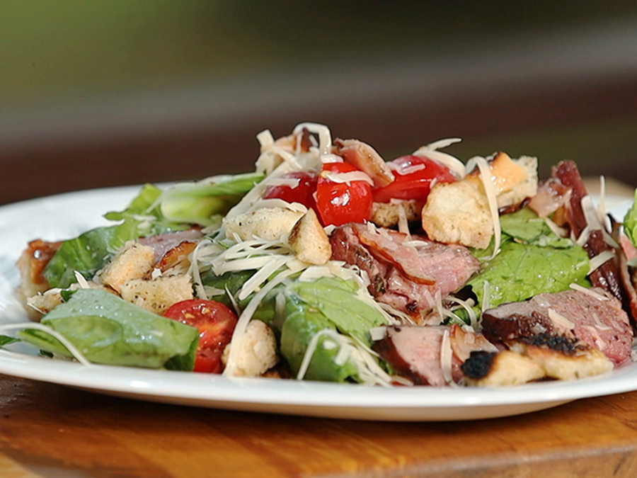 Салат из мяса, сухариков и бекона – отличная закуска для семейного обеда. Рецепт блюда от нашего шеф-повара вы найдёте в "Фуд-корте".