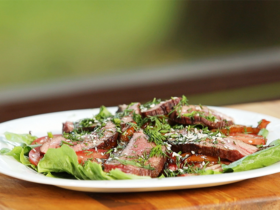 Яркий и сытный салат из болгарского перца, томатов и мяса с добавлением кунжута приготовит наш шеф-повар. Попробуйте это блюдо по рецепту рубрики "Фуд-корт".