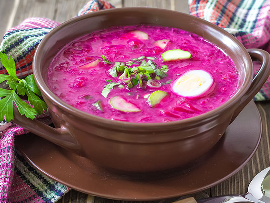 Запечённая свёкла, ароматная зелень, хрустящие огурцы и варёный картофель. Летний суп из сезонных овощей приготовила рубрика "Советы с настроением".