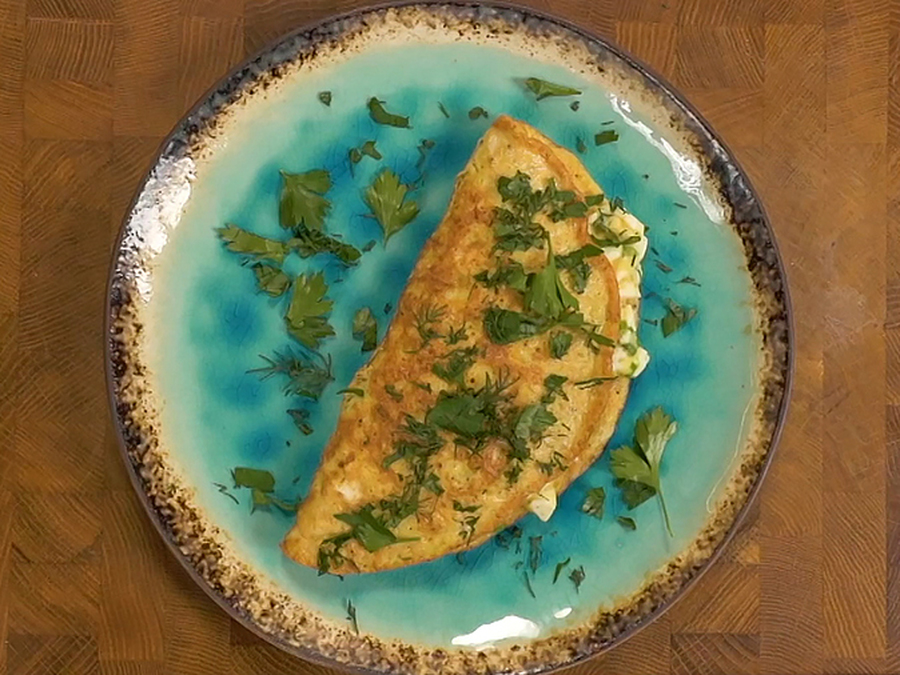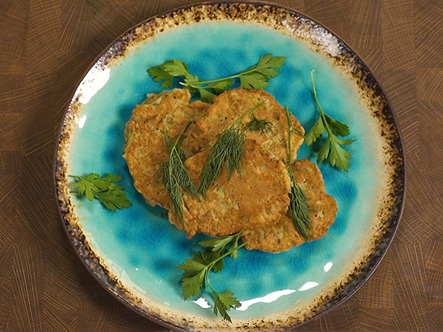 Блины из кабачков и чечевицы станут хорошей альтернативой яичнице. Начинкой послужат варёное куриное яйцо и зелёный лук, а украшением станет петрушка.