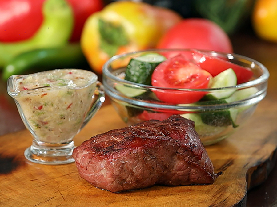 Сытное и пикантное блюдо приготовит наш шеф-повар. Попробуйте мясо с соусом из лука, тростникового сахара и перца чили по рецепту рубрики "Фуд-корт".