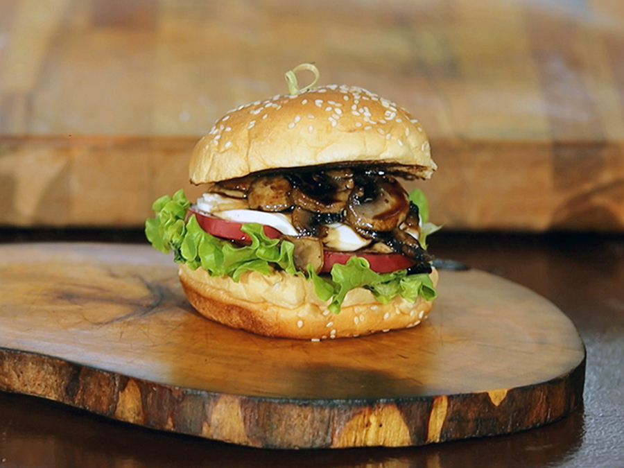 Вегетарианский бургер приготовит наш шеф-повар. Рецепт блюда с шампиньонами и медовым соусом вы найдёте в рубрике "Фуд-корт".