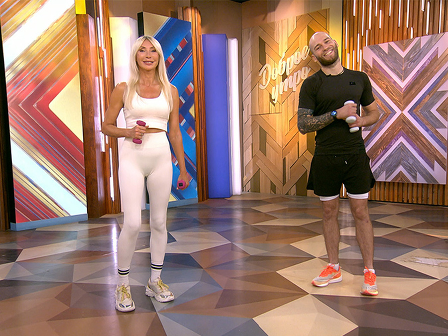 Тонизируем мышцы рук и бёдер, повысим пульс, создадим кардионагрузку, проработаем зону лопаток. Энергоёмкие движения покажет рубрика "Быстрая зарядка".