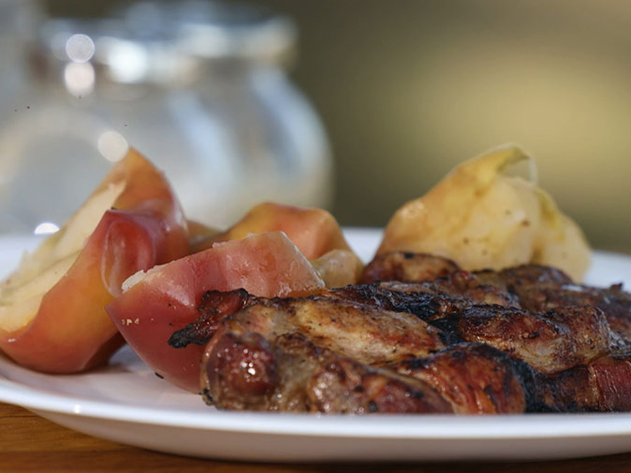 Запечённые яблоки и мясо на гриле приготовит наш шеф-повар. Вам понравится свинина в маринаде из мёда и лимона по рецепту рубрики "Фуд-корт".