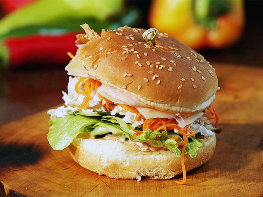 Вкусное и полезное блюдо приготовит наш шеф-повар. Вам понравится бургер с курицей на гриле и морковью по-корейски по рецепту "Фуд-корта".