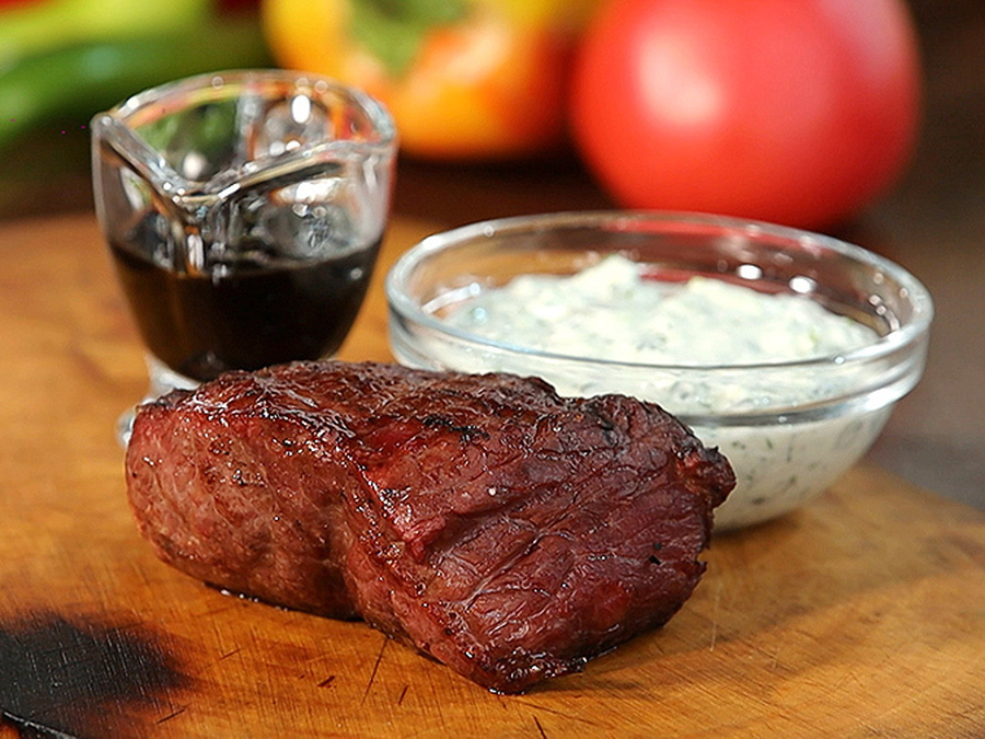 Мясо заиграет новыми красками с блюдом от нашего шеф-повара. Вам понравится стейк из говядины со сметанно-огуречным соусом по рецепту рубрики "Фуд-корт".