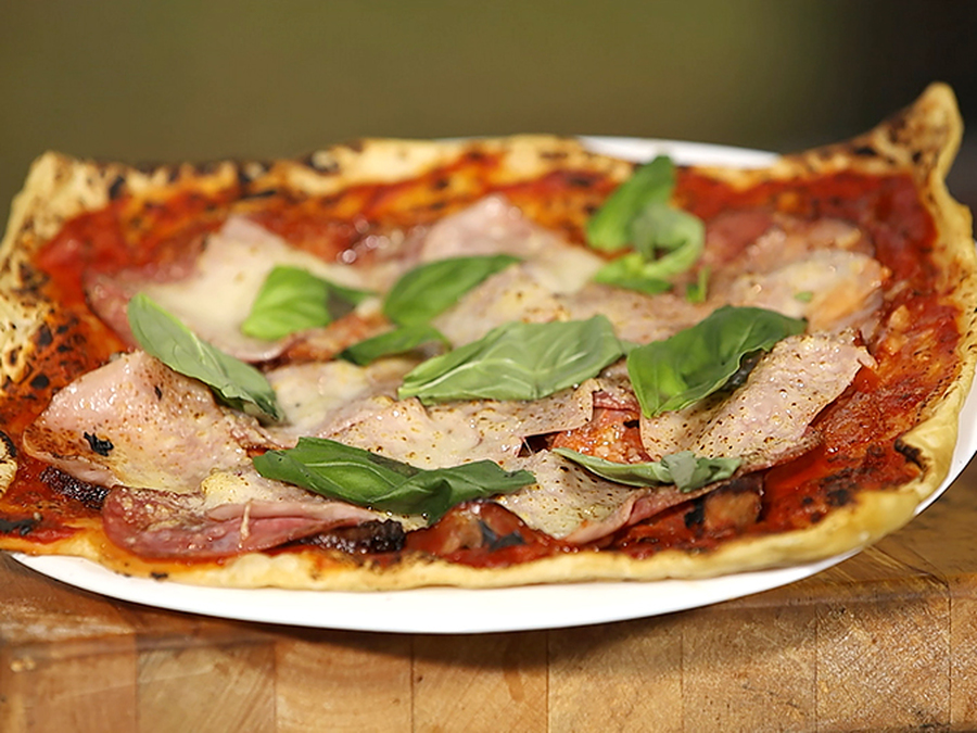 У пиццы с мясными деликатесами от нашего шеф-повара идеально пропечённая начинка и хрустящая корочка. Рецепт блюда вы найдёте в рубрике "Фуд-корт".
